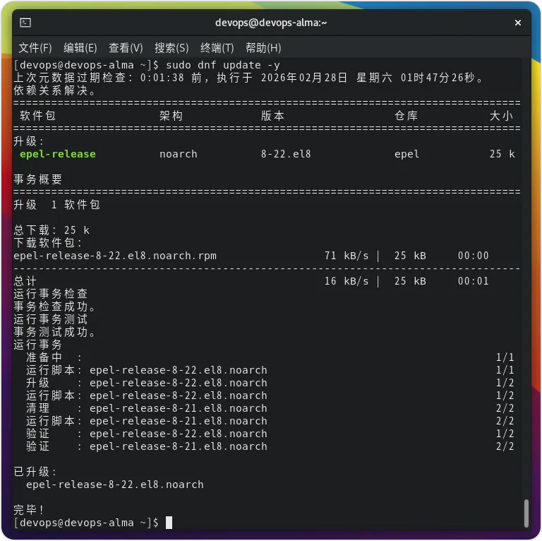 如不再需要 EPEL 仓库,可将其移除