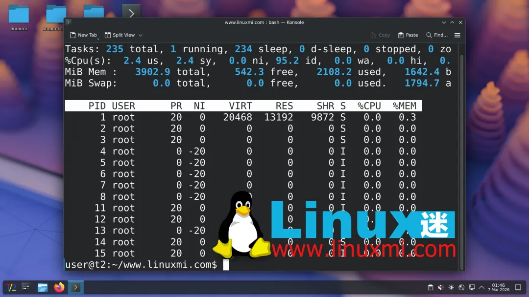 在核心系统组件方面,T2 Linux 26.3 采用了 Linux kernel 6.19 内核,并搭配最新的 Mesa 26.0 图形栈,以提升硬件兼容性和图形性能。
