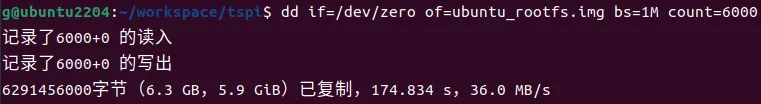 dd if=/dev/zero of=ubuntu_rootfs.img bs=1M count=6000