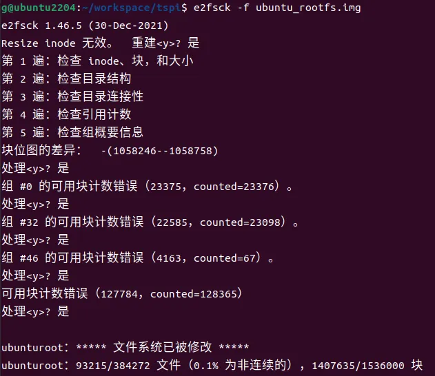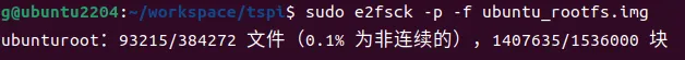 运行 e2fsck 工具,修复文件系统映像中的错误,确保文件系统的一致性和完整性。