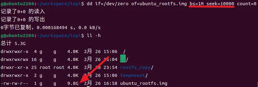 dd if=/dev/zero of=ubuntu_rootfs.img bs=1M seek=10000 count=0