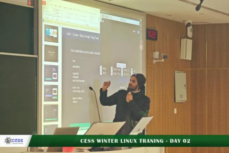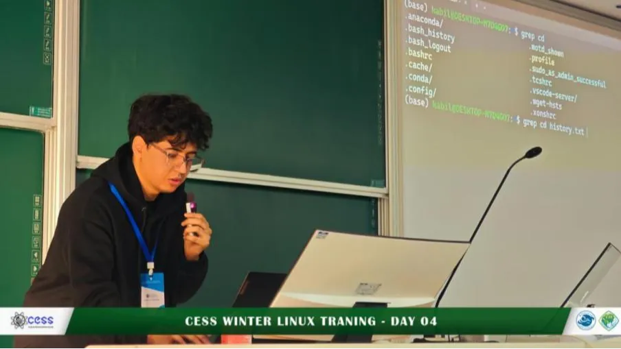 Led by a team of experienced CESS members, including Kabil Abderrahim, Sandio Djimeli Julio Armel, Jumashev Uzakberdi, Farea Ibrahim Khaled Qasem, and Barmon Chandra Deb, the workshop guided students through the core concepts of system architecture, file management, and automation. Each session was carefully structured to build upon the previous day's learning, ensuring a progressive and comprehensive experience.