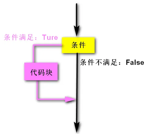 说明:条件满足就执行粉色代码块,然后再继续往下执行后面的代码;条件不满足就跳过粉色代码块,直接往后执行后面的代码。