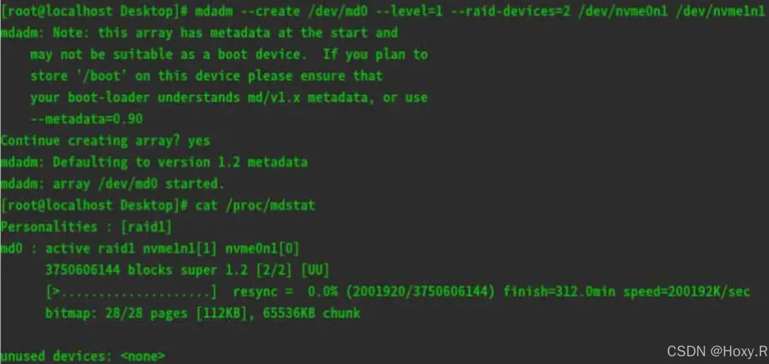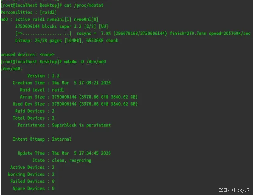 今天在配置服务器基础环境的时候发现。。。两块儿nvme盘无法做硬raid,具体看了一下因为两块儿nvme是直连主板的没有接raid卡。硬raid做不了,那只能做软raid了,顺便写这篇文章记录一下。