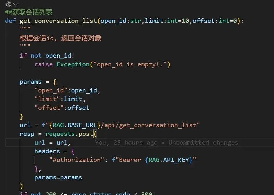 注:这个是post传输,需要注意一下。接下来,ragflow里增加个方法,如下: