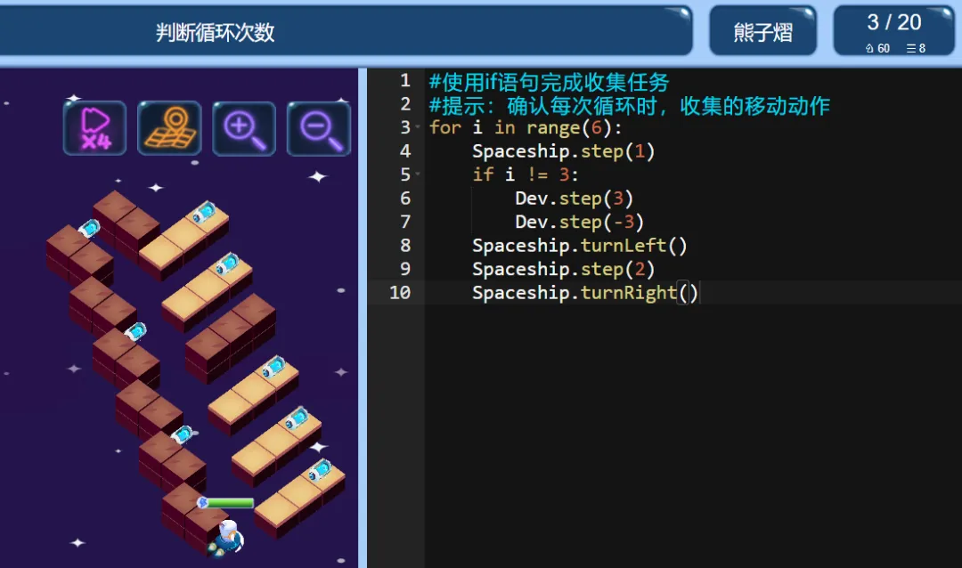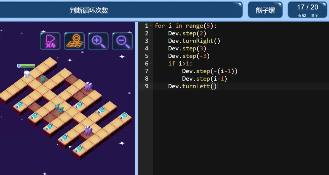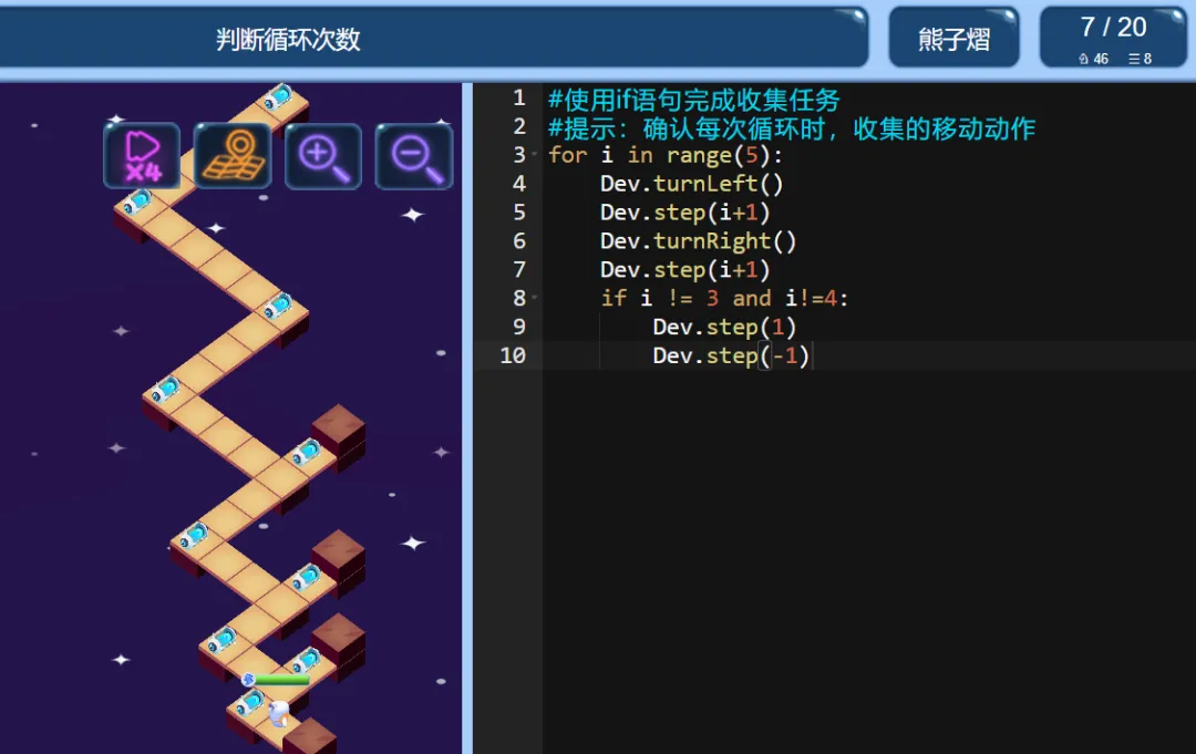 当前位置:首页>python>ICode Python 三级训练场 循环次数判断(1)