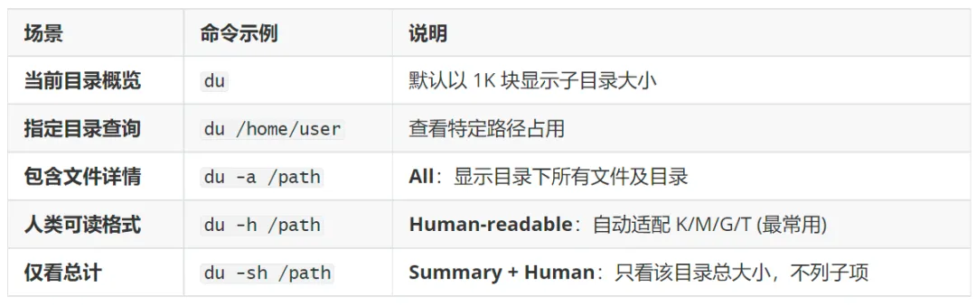 du 的强大在于管道符 (|) 的配合,实现数据的筛选、排序、统计和格式化。