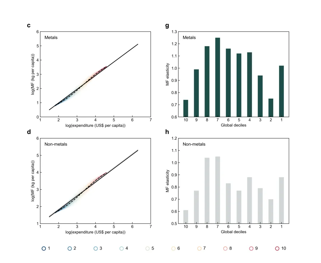 重新耦合效应: 更有意思的是,研究发现高消费群体中出现了资源使用与消费的“重新耦合(recoupling)”,这挑战了传统的“绝对脱钩”理论。研究呼吁:仅仅依靠提高生产效率是远远不够的,要实现真正的可持续发展,我们必须直面并解决富裕阶层的物质密集型生活方式。
