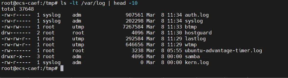 ls -lt /var/log | head -10 直接看到最近10个修改的文件。