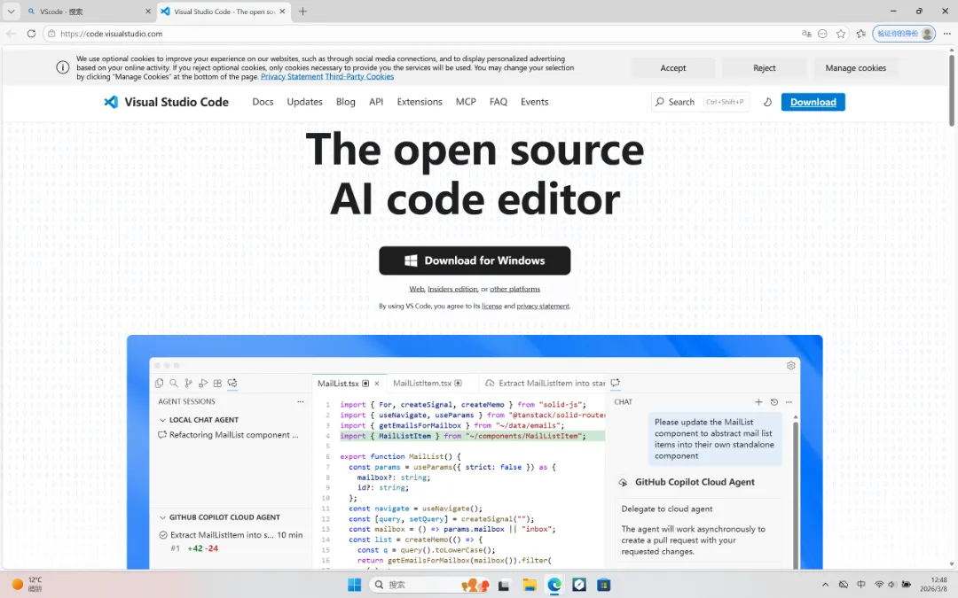 1.浏览器搜索VScode官网 Visual Studio Code - The open source AI code editor