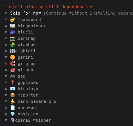 常用技能下载步骤:有对应 API 就直接配置;没有可先全部跳过,后续再统一补配: