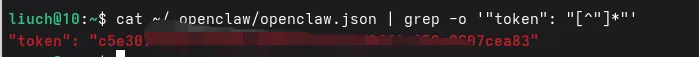 cat ~/.openclaw/openclaw.json | grep -o '"token": "[^"]*"'