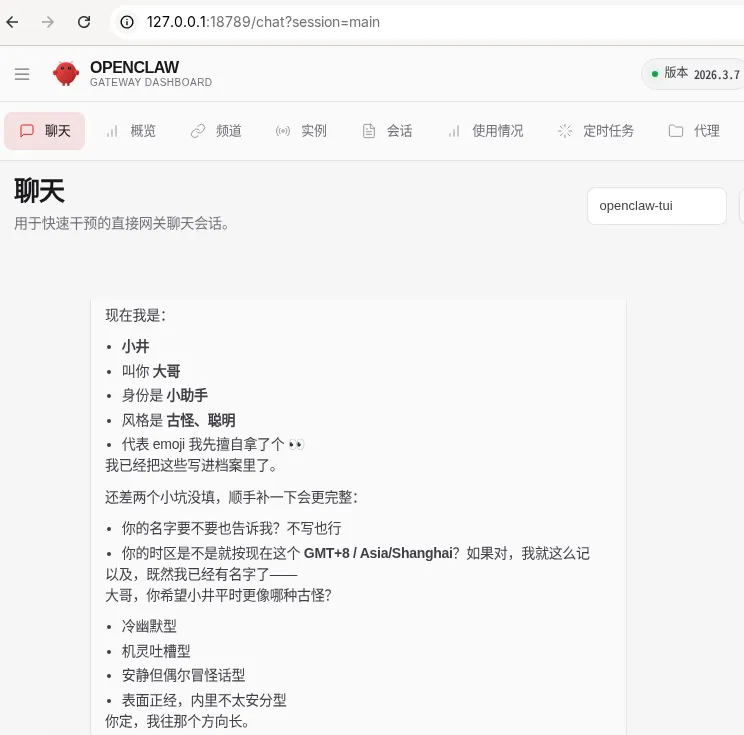 http://127.0.0.1:18789/按页面提示粘贴 token 即可进入控制台。