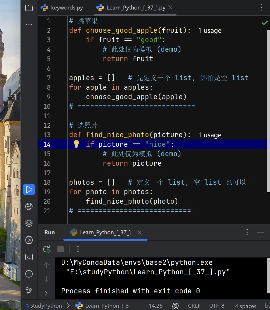 “温馨”提示:这两句中,examples 是代码中前面某处建立的一个list(列表);do_examination是前面已经写好的子程序(有一个对应的def …子程序块),而example则很可能是临时取的变量名。所以,这两句也可以写成: