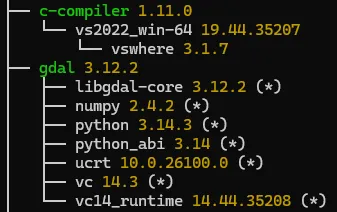 uv 极其优秀,但它只管纯 Python 生态(PyPI)。而我们搞地理空间计算和遥感开发的,从底层的GDAL、PDAL到PROJ,灵魂全是C/C++。用 uv 下载的往往只是一层薄薄的 Python Wrapper(接口封装),如果没有系统级的底层二进制文件支持,根本跑不起来。