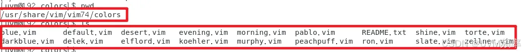 设置desert主题后的效果以下目录中以.vim结尾的文件即为系统自带的主题文件,亦可在.vimrc中配置为以下主题: