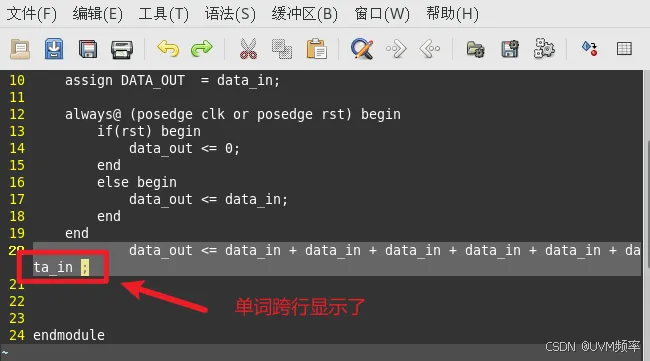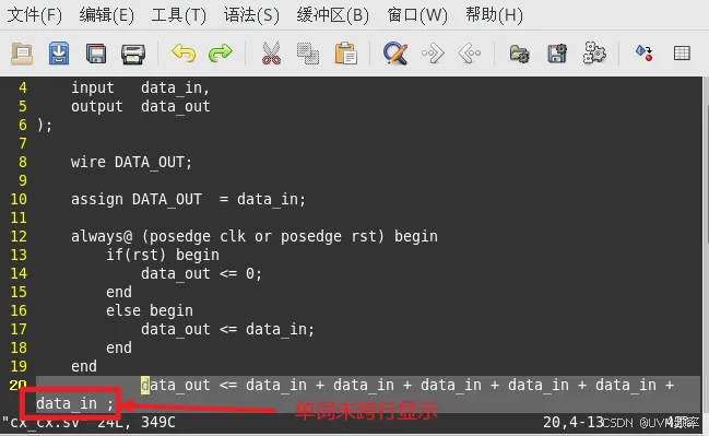gvim默认配置中单词会跨行显示,如下图所示: