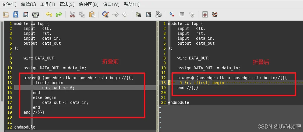 manual:手工定义折叠diff:比较模式,对没有更改的文本进行折叠syntax:用语法高亮来定义折叠expr:用表达式进行折叠