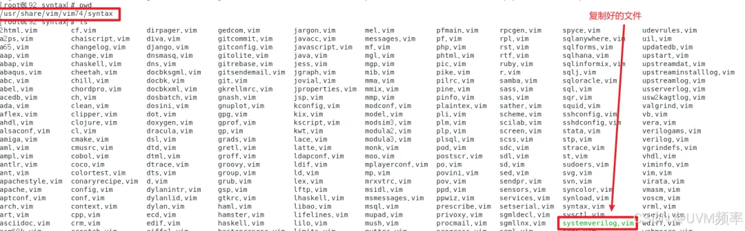 将下载好的systemverilog语法高亮插件放在/usr/share/vim/vim74/syntax目录中: