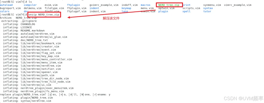 将下载好的目录树插件解压到/usr/share/vim/vim74目录中: