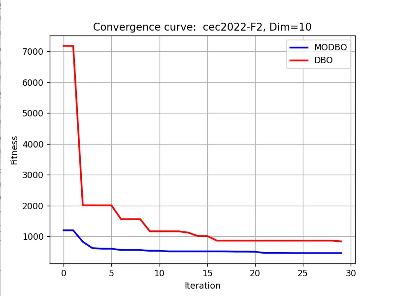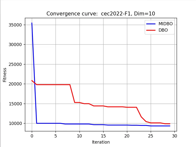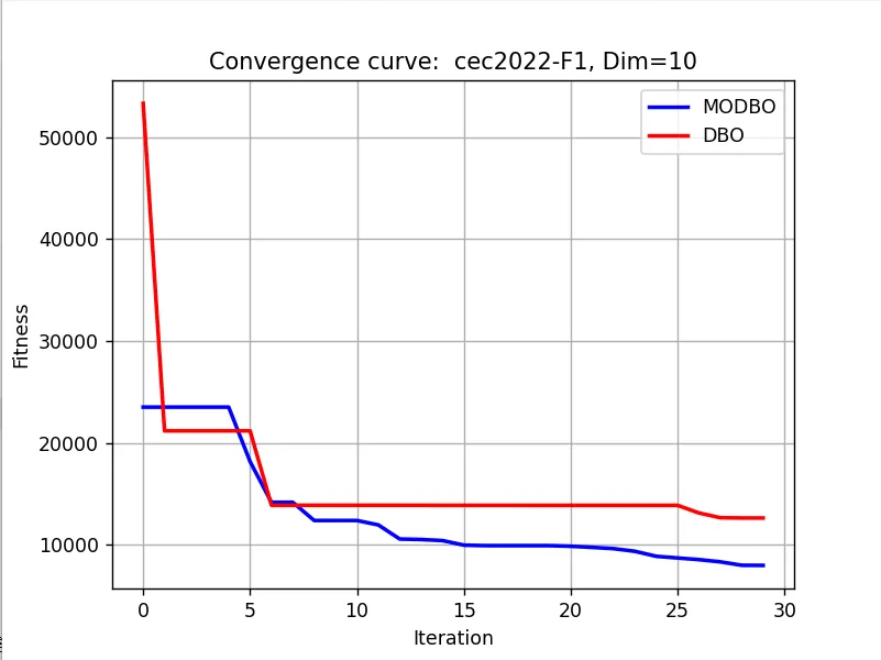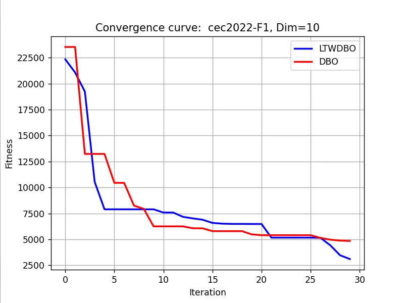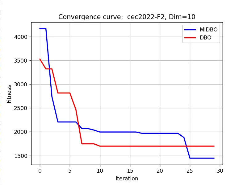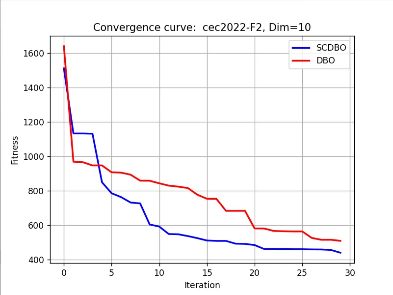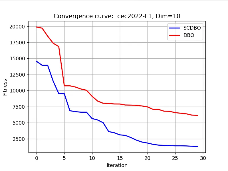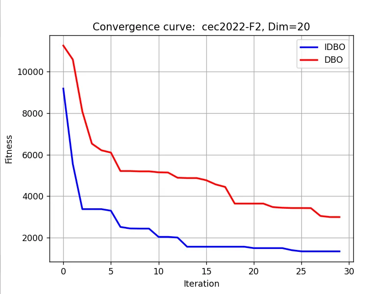 pip install opfunu # 参考文档:https://github.com/thieu1995/opfunu本期文章将改进的蜣螂算法与原始算法在多个CEC函数集上进行对比。并画出函数图像,迭代曲线。这里采用CEC2022展示各算法效果。