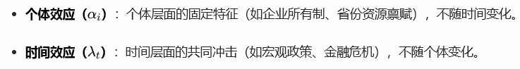 - 时间不变变量固定效应模型会自动剔除这类变量,若需估计其影响,可改用随机效应或分层模型。