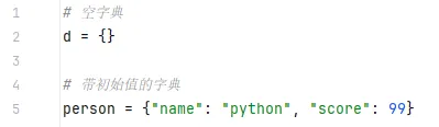 - 字典用花括号