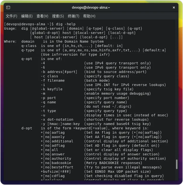 要了解可以与 Dig 一起使用的其他命令,请使用其帮助选项: