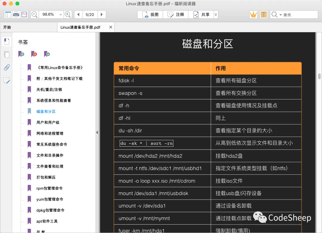 今天继续分享最近花了一周多时间梳理出来的一个《常用高频Linux速查备忘手册》。有了它,还怕Linux操作系统常用操作和命令记不住么?