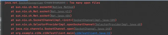 处理完文件描述符过多的问题之后,继续重新跑客户端,又报错了。