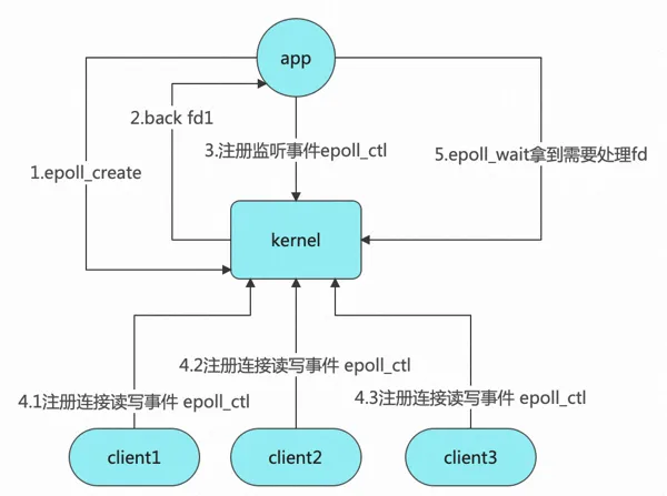 - 对应的系统调用 int epoll_ctl(int epfd, int op, int fd, struct epoll_event *event);