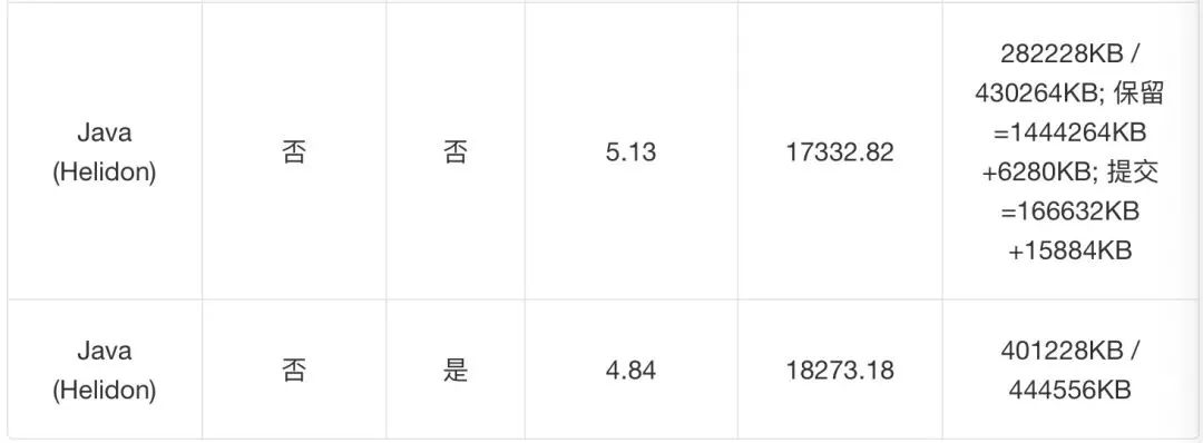 在这种情况下,与运行在 JVM 上的应用程序相比,我们发现使用 GraalVM 原生镜像并不会在吞吐量或者响应时间等层面带来任何实质性的改善,但内存占用量确实有所减少。