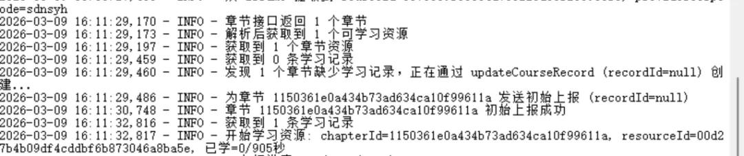 items = api_utils.get_course_chapters(source_id, provider_corp_code)# 每个item包含 chapterId, resourceId, timeToFinish(秒), minStudyTime等