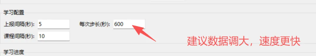有了recordId后,就可以循环调用updateCourseRecord接口,每次增加currentPosition(步长和间隔可在GUI中动态调整),直到达到总时长timeToFinish。这样模拟了真实观看视频的过程,不会被服务器检测为异常。