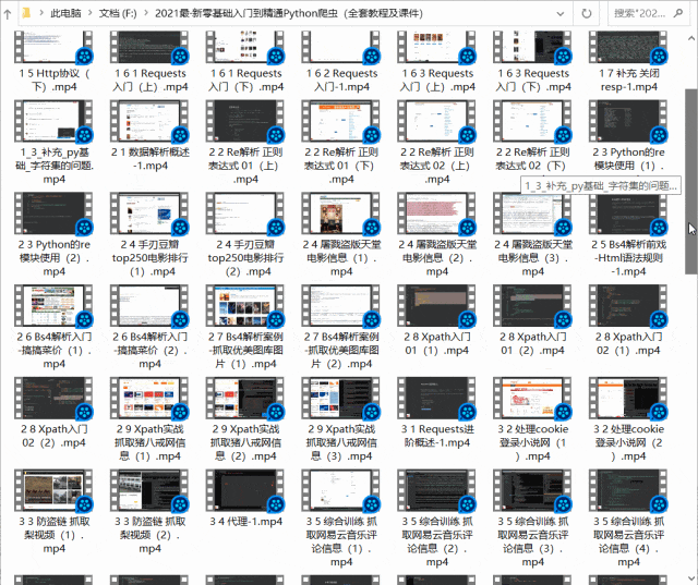 其中包含了Python基础入门、爬虫、数据分析、web开发,这里一共有几十个吧,可能不是很多,但对于初学者来说应该足够。里面的知识点都是比较干练的,时长也是正常的40分钟一节课。