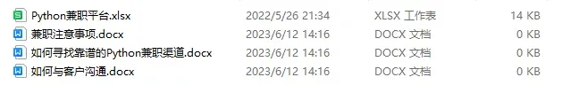 学会Python以后,还可以在各大兼职平台接单赚钱,各种兼职渠道+兼职注意事项+如何和客户沟通,我都整理成文档了。