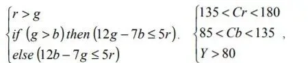 https://blog.csdn.net/qq_22527639/article/details/815015652004年,Georgy Kukharev和Adam Nowosielski为了提高模型的稳定性,将多个颜色空间结合,提出RGB颜色空间和YCbCr颜色空间的混合肤色检测器。像素值满足如下条件: