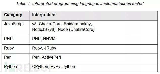 这项研究的作者是 IOActive 的高级安全顾问 Fernando Arnaboldi。这位专家表示他使用了自动化的模糊测试工具在解释器中对五种编程语言进行了测试:Java,Perl,PHP,Python和Ruby。在对默认库和内置函数进行模糊测试之后,他在研究中公布了每种语言存在的一些问题。