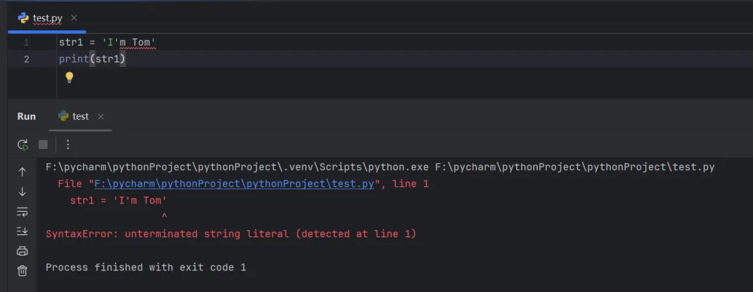 str1 = 'I'm Tom'print(str1)