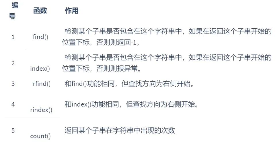 字符串序列.rfind(子串)字符串序列.rindex(子串)