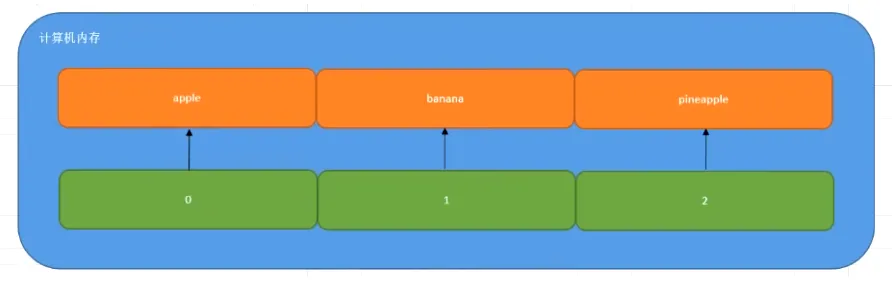列表在计算机中的底层存储形式,列表和字符串一样,在计算机内存中都占用一段连续的内存地址,我们想访问列表中的每个元素,都可以通过“索引下标”的方式进行获取。