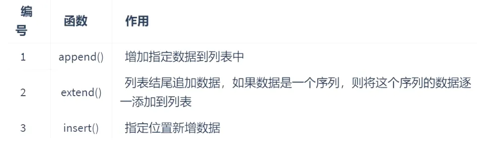 列表的作用是一次性存储多个数据,程序员可以对这些数据进行的操作有:增、删、改、查