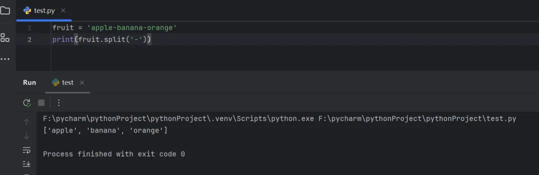 fruit = 'apple-banana-orange'print(fruit.split('-'))