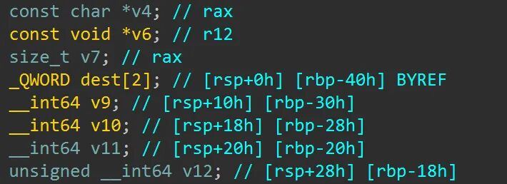 由于dest变量在站的布局之后就是v11变量。所以copy_to_user复制 40 字节的数据到用户态会将v11的值也给复制到用户态。