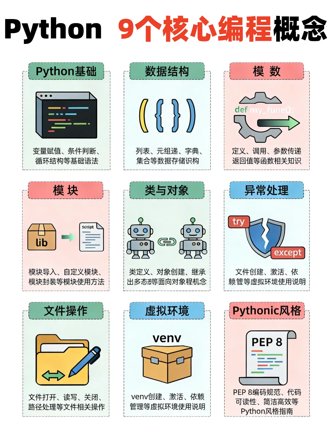 Python 入门不知道从哪下手?熬夜整理 9 个核心编程概念,适合新手小白直接抄作业!
