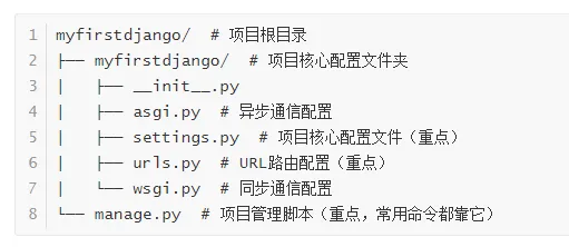 第二步:创建项目(项目名建议用英文,比如myfirstdjango,避免中文报错):