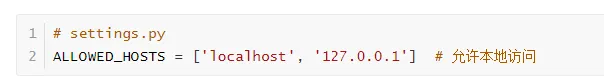 打开settings.py,找到「ALLOWED_HOSTS」,修改为:
