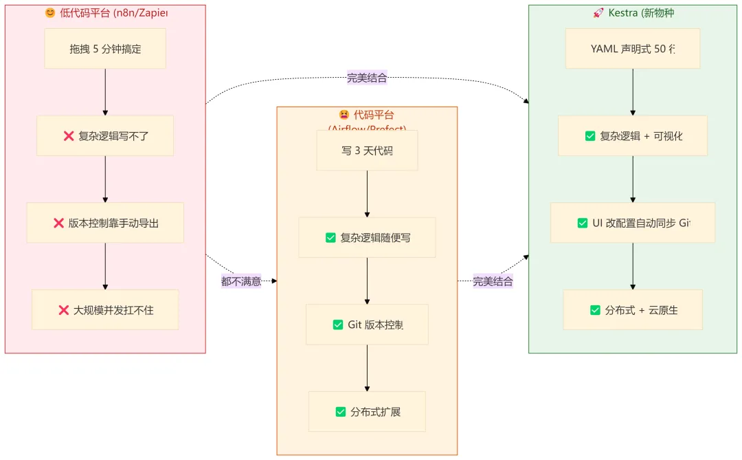 就像 SQL 让我们不需要关心数据如何扫描,Docker 让我们不需要关心依赖如何安装,Kestra 让我们不需要关心任务如何调度。