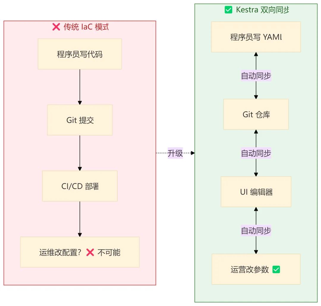 用 YAML 声明你要什么,Kestra 帮你搞定怎么跑——支持定时/事件触发、分布式执行、Git 版本控制、UI 与代码双向同步。