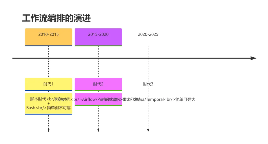 - 不适合:复杂 DAG 依赖、条件分支、错误重试、并发控制、数据管道